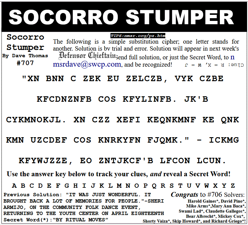 Find the Socorro Stumper every week in El Defensor Chieftain