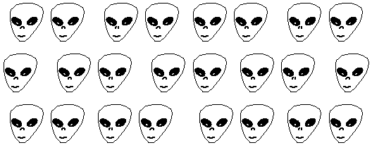 View the screen or print-out about a foot from your face. Relaxing your eyes, bring the the screen or print-out closer to your face, until two adjacent images join together (in your brain). The left and right eyes will be looking at different images, as shown in the picture below. Don't worry too much about focusing - the 3D effect will appear as different depths of different images, even though the actual images may appear a bit out-of-focus. Try it!